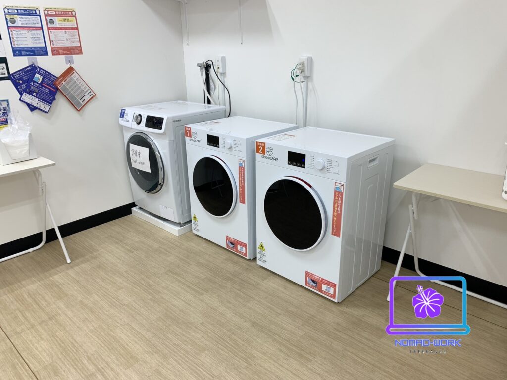 chocoZAP(チョコザップ)沖縄県庁前店には旅行者に嬉しいランドリーがあります。ですが訪れた時には洗濯機が故障中でした。こちらは先月伺った時も故障中だったので、修理されるには時間がかかりそうですね。。。乾燥機は2台設置されています。