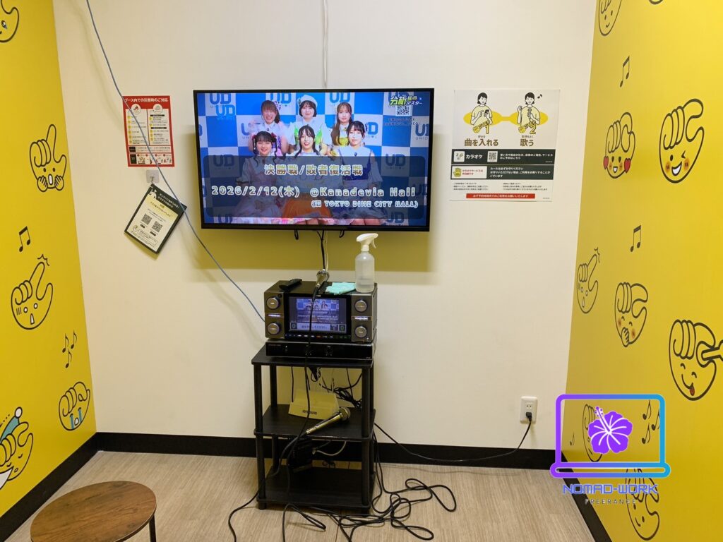 カラオケスペースもありました。一回の予約で20分から使用することが出来るので、一曲だけ歌いたい!と思う時などにいいかもしれませんね。音漏れに関しては、少し外に聞こえるかなという感じになります。