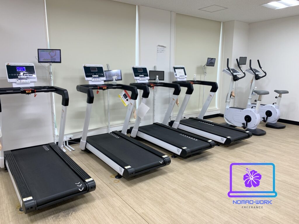 入り口隣にはトレッドミルが4台とバイクが2台あります。訪れた時は1台のトレッドミルが故障中になっていました。また県庁前店のトレッドミルは旧式(小型タイプ)になっています。
