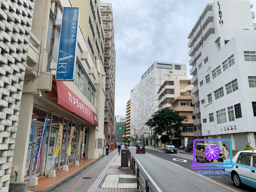 前に見えるのは那覇バスターミナルと県立図書館が入っている建物になります。交通量はかなり多めになります。