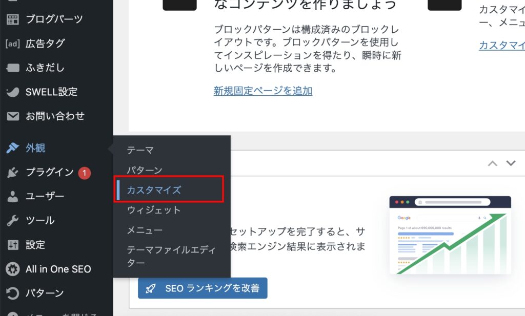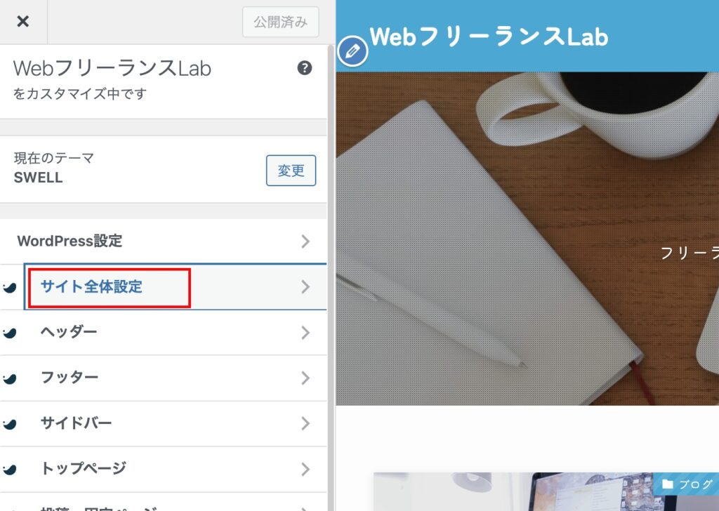 SWELLではデフォルトで4つのフォントが準備されていますが、もっと違うおしゃれなフォントを使用したいと思う方もいると思います。その場合は以下のような手順で設定することができます。