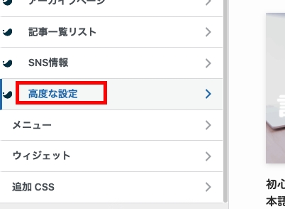 WordPressの管理画面のサイドバーの外観>カスタマイズ>高度な設定をクリック。