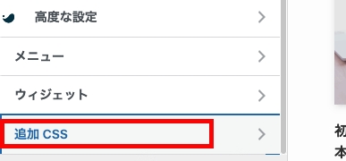 WordPressの管理画面に戻っていただき、先ほどの高度な設定より下にある「追加CSS」の箇所をクリックします。