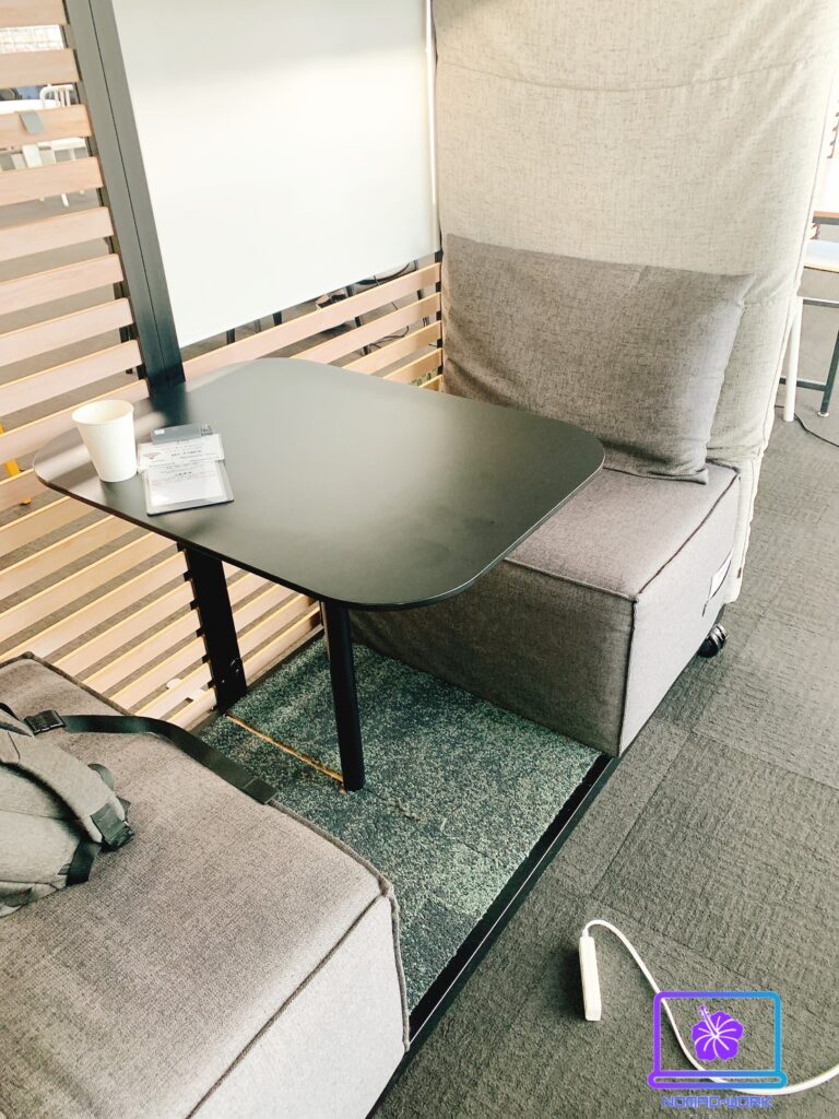 これも嬉しかった点ですが、デスクの広さが大きく作業しやすかったです。私自身よくコードを書くのですが、その際にモニターを設置します。モニターを使用する際にデスクが狭いとかなり作業がやりづらいです。しかしこちらのコワーキングスペースは1人用のデスクが広いので助かりました。