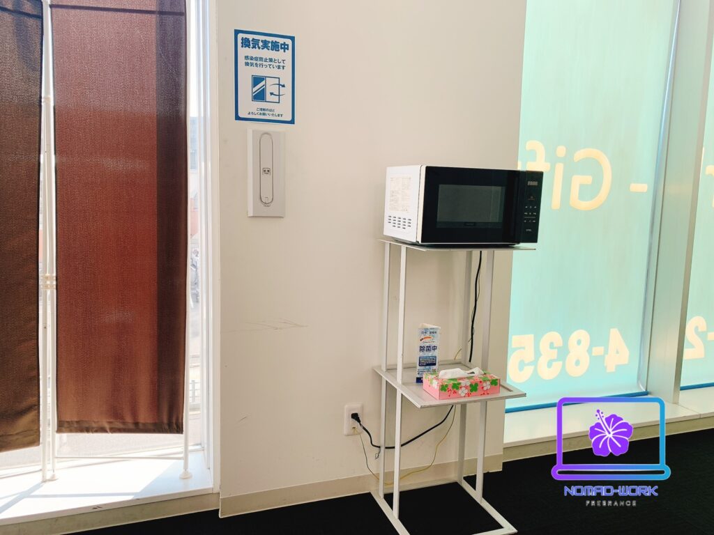 コワーキングスペース内には電子レンジもありました!こちらで温めることもできます!