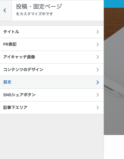 SWELLをインストールするとデフォルトで目次の設定がされていますが、カスタマイズをしたいと思う人も多いと思います。SWELLの目次は以下の場所から設定することができます。
