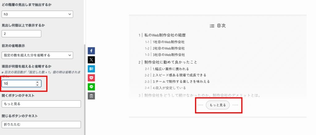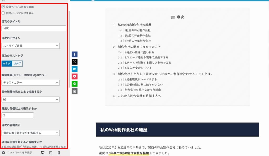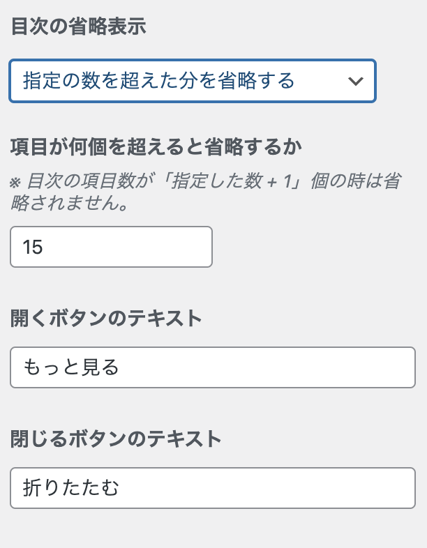見出し何個以上で表示するかは、見出しが指定数字以内なら目次を非表示にすることができます。