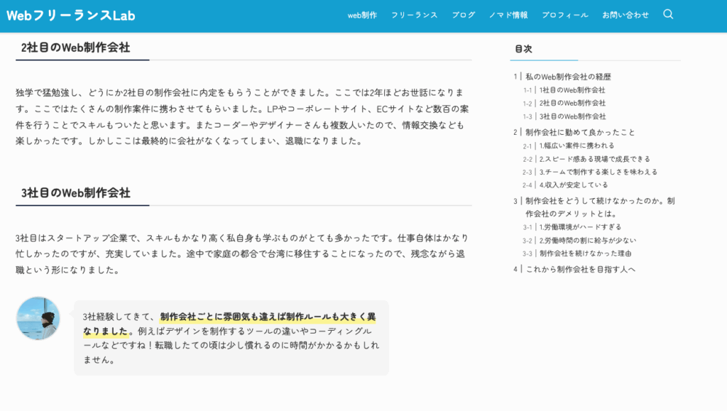 SWELLの目次機能は、標準装備ながら自由度が高く、シンプルな設定からデザイン変更、さらにはサイドバーへの追従表示まで幅広く対応することができます!記事に目次を設置することで、読者が必要な情報へすぐに飛ぶことができるので、見やすい記事にすることができます!