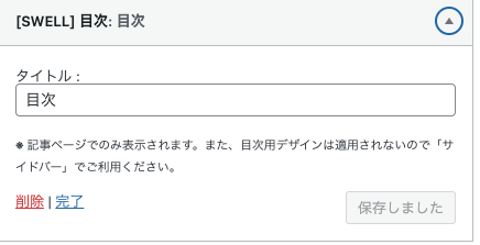 SWELLの目次カスタマイズ機能にはさまざまな項目があります。