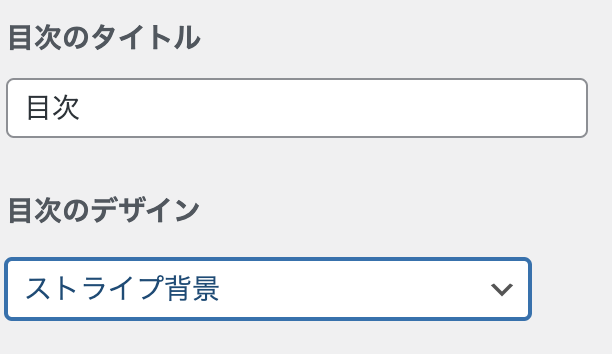 目次のタイトルは目次の上部に表示されるタイトルの部分になります。自由に目次タイトルを変更することができます。目次のデザインはSWELLでは4種類準備されており、
