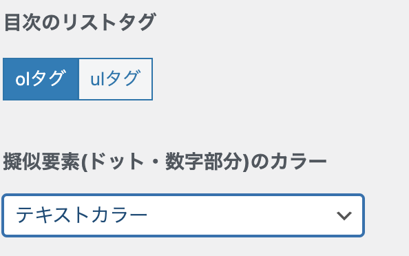 3.「目次のリストタグ」「擬似要素(ドット・数字部分)のカラー」