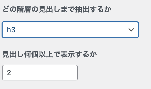 4.「どの階層の見出しまで抽出するか」「見出し何個以上で表示するか」