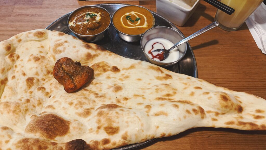 途中でお腹が空いて近くにネパールカレーがあったので食べてきました。この大きさで1050円。味も美味しくて、カレー好きにはたまりませんでした。