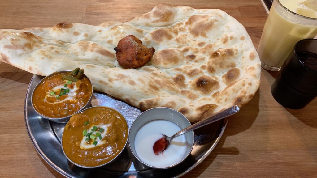 最近ハマっているのがネパールカレー。毎週末に1週間頑張ったご褒美として食べるのが至福のひとときです。住んでいるところから近い場所にあってナンも大きく、ドリンク、サラダ付きで1050円という破格の安さ。ネパールカレーの開拓もしたいです。